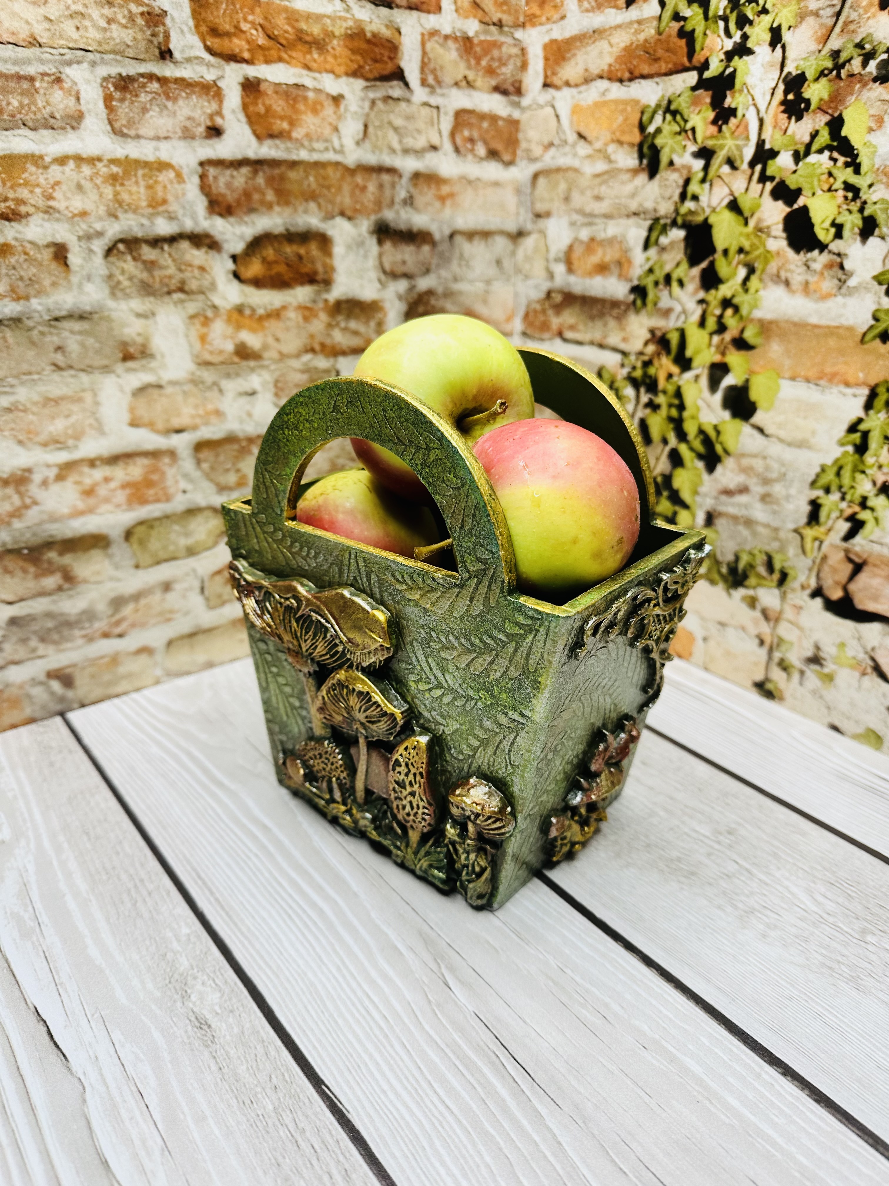 Изящная корзинка из качественного МДФ, созданная в оригинальной технике Mix Media —в  сочетании с моделирующей пастой, художественных восков и ярких акриловых красок. Это стильный аксессуар, который идеально подойдет для хранения конфет, печенья, фруктов или милых мелочей. Такая вещица прекрасно впишется в любой интерьер и порадует детей и взрослых.
