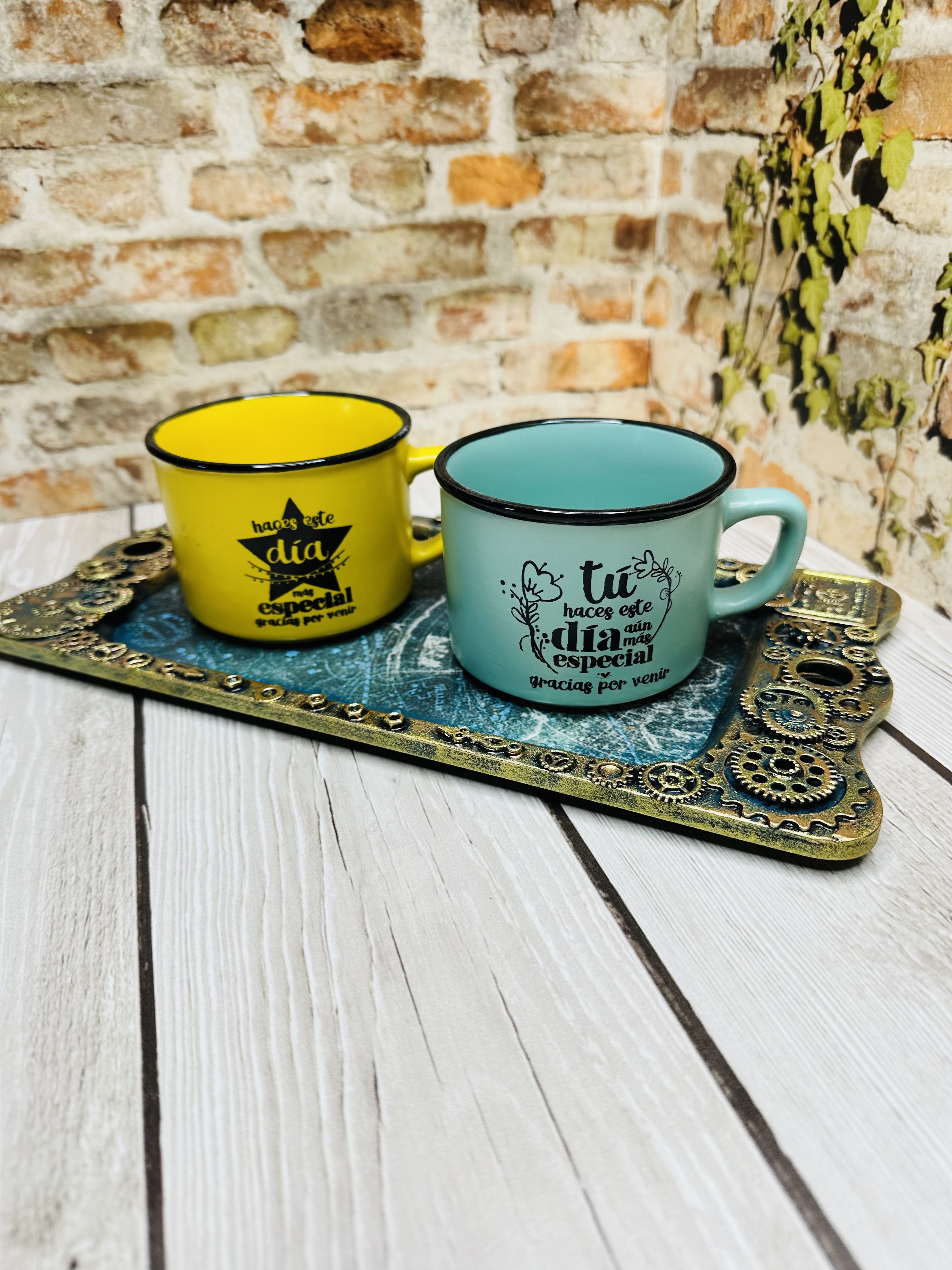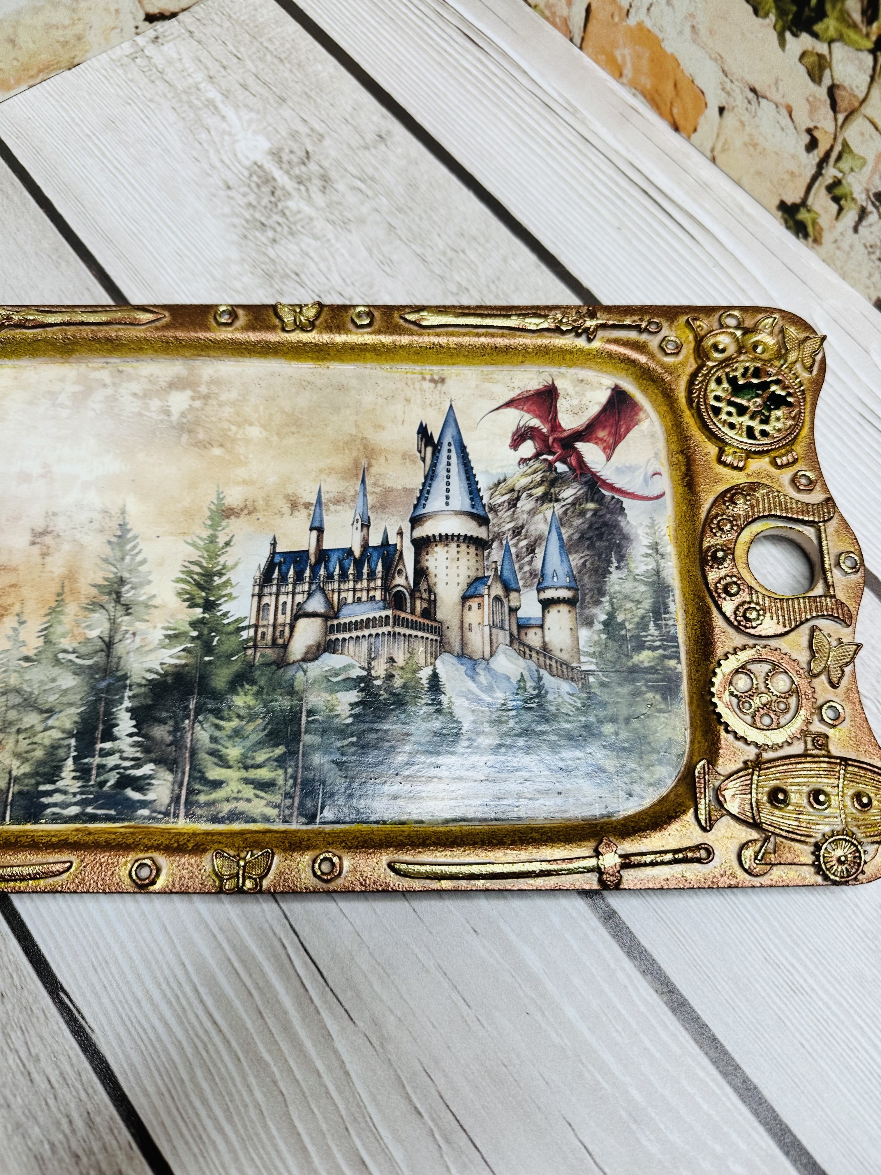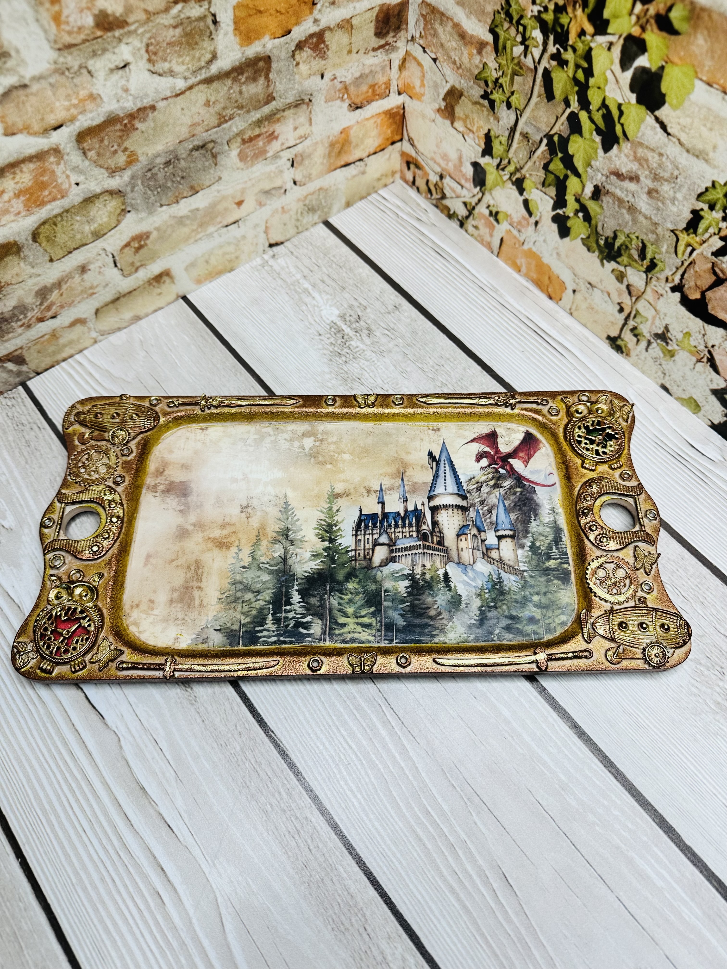 Мини-поднос в уникальном футуристическом стиле, созданный из прочного МДФ и украшенный металлическими шестернями, декупажными картами, художественными восками и акриловыми красками. Этот предмет гармонично сочетает технику Mix Media и Steampunk, добавляя особый шарм любому помещению. Отличное решение для подачи напитков и закусок, хранения аксессуаров или просто декоративного элемента интерьера. Такой необычный поднос привлечёт внимание и подчеркнёт ваш вкус к необычному дизайну.