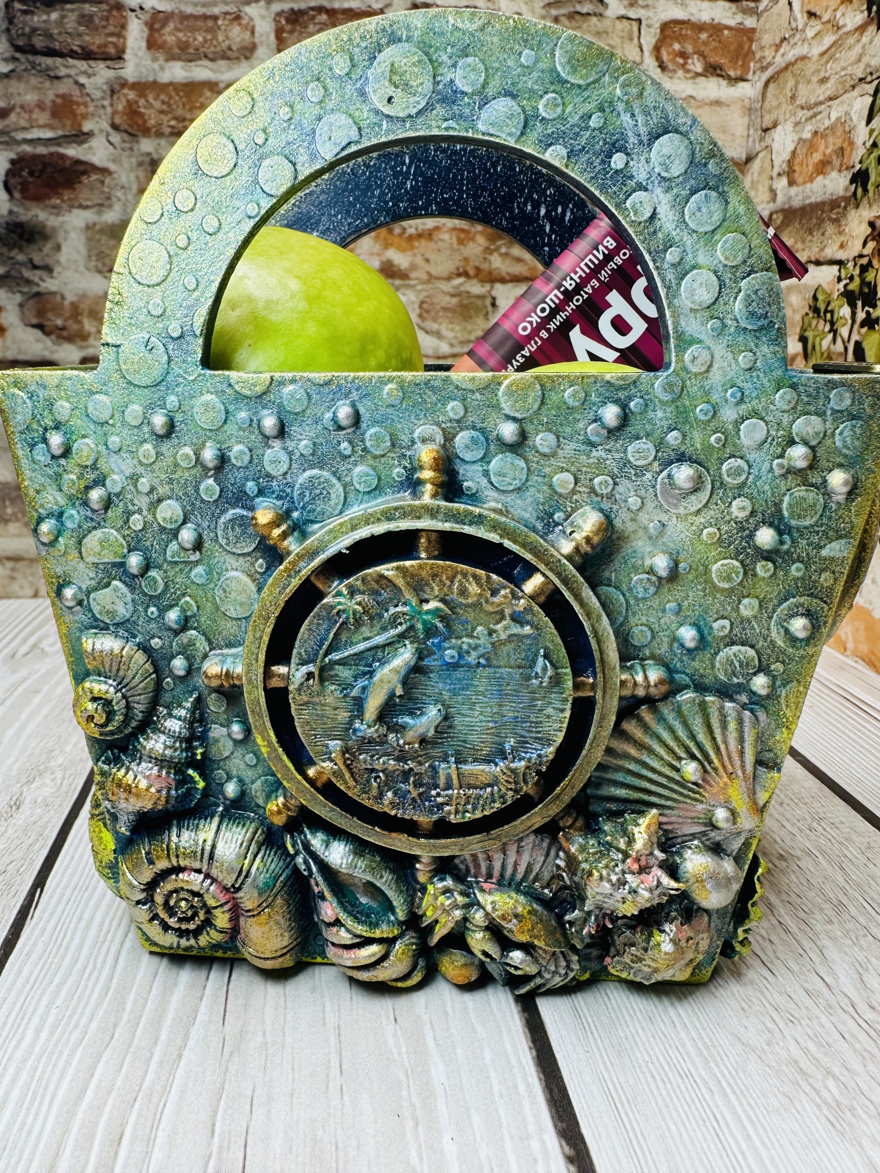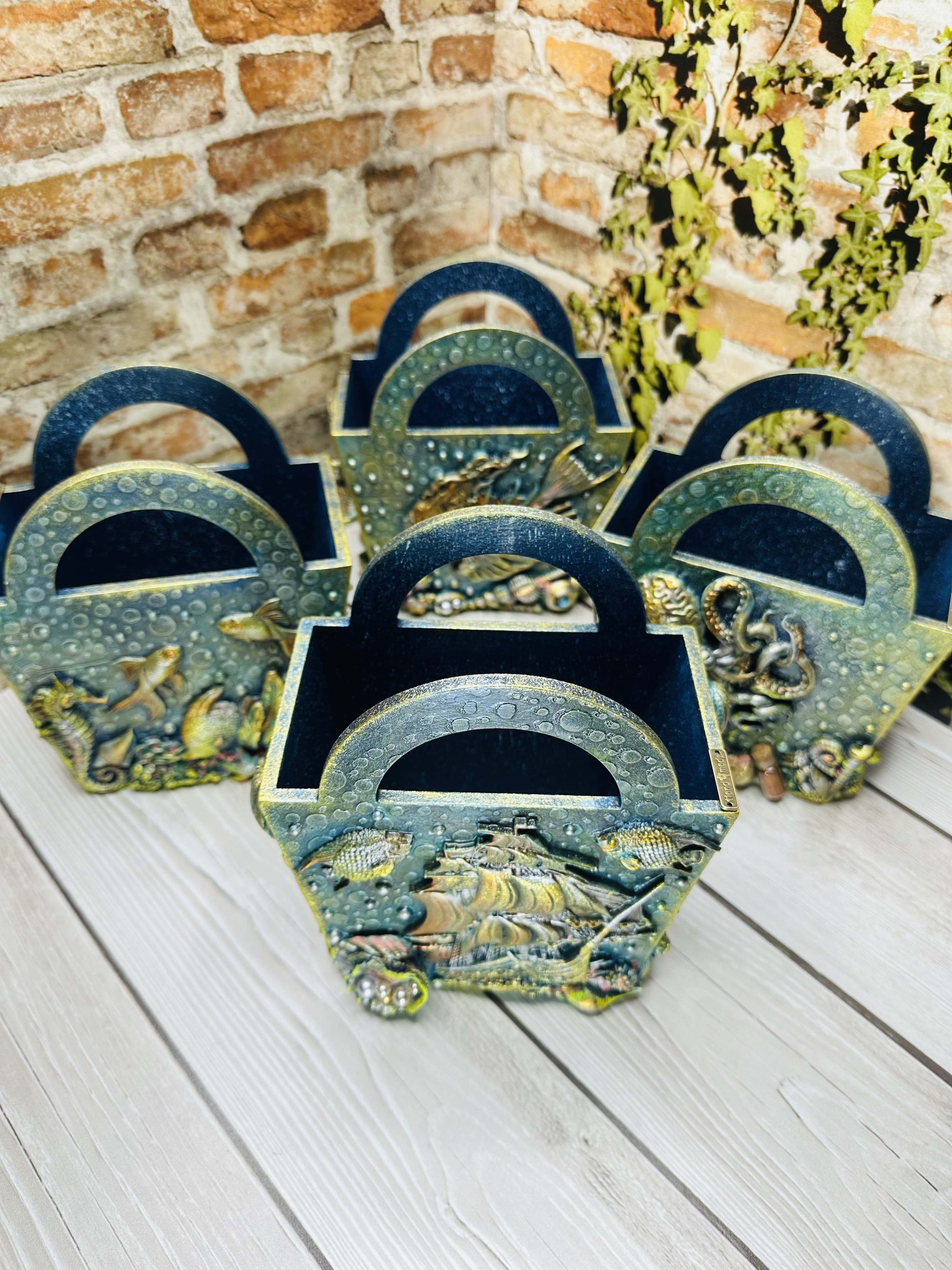 Набор корзиночек в морском стиле — изящное решение для хранения мелочей или сладостей, печенья. Изготовлены из экологически чистого МДФ, дополнена декоративными элементами, художественными восками и акриловыми красками в стиле Mix Media.