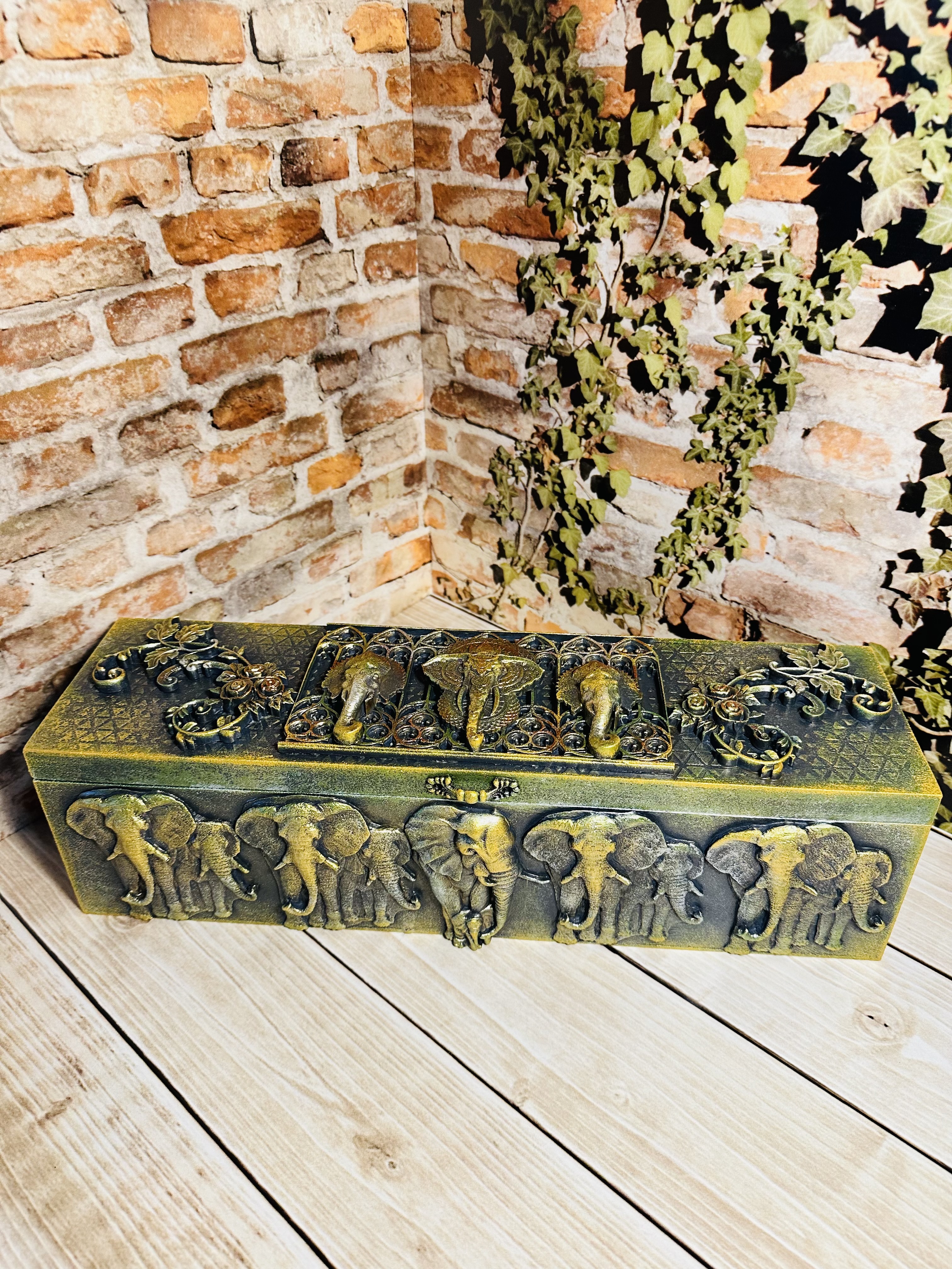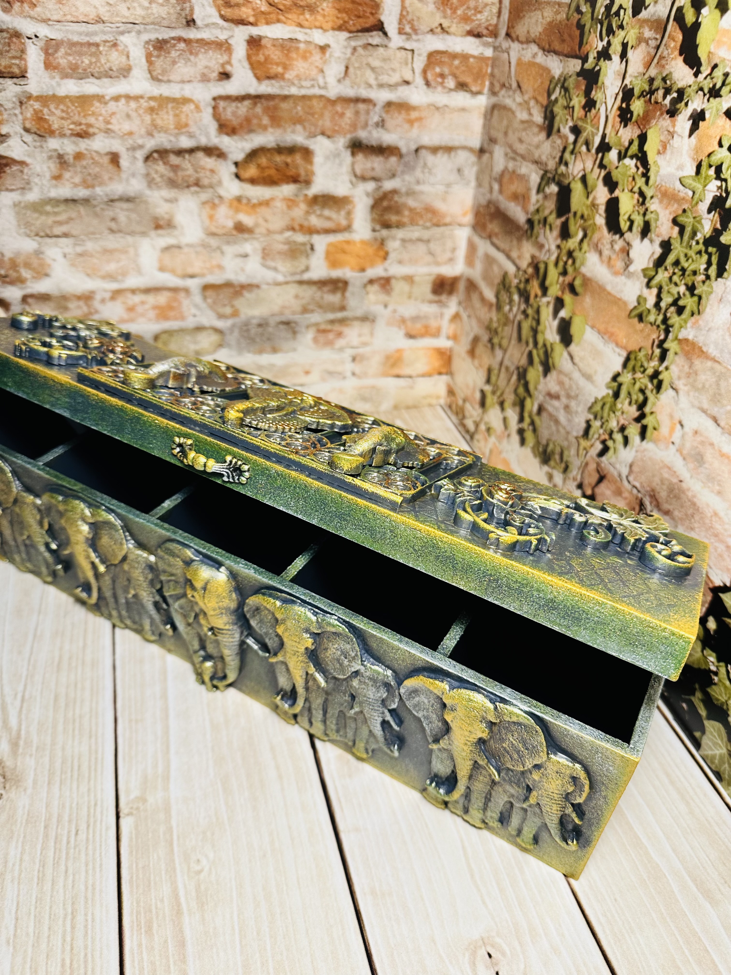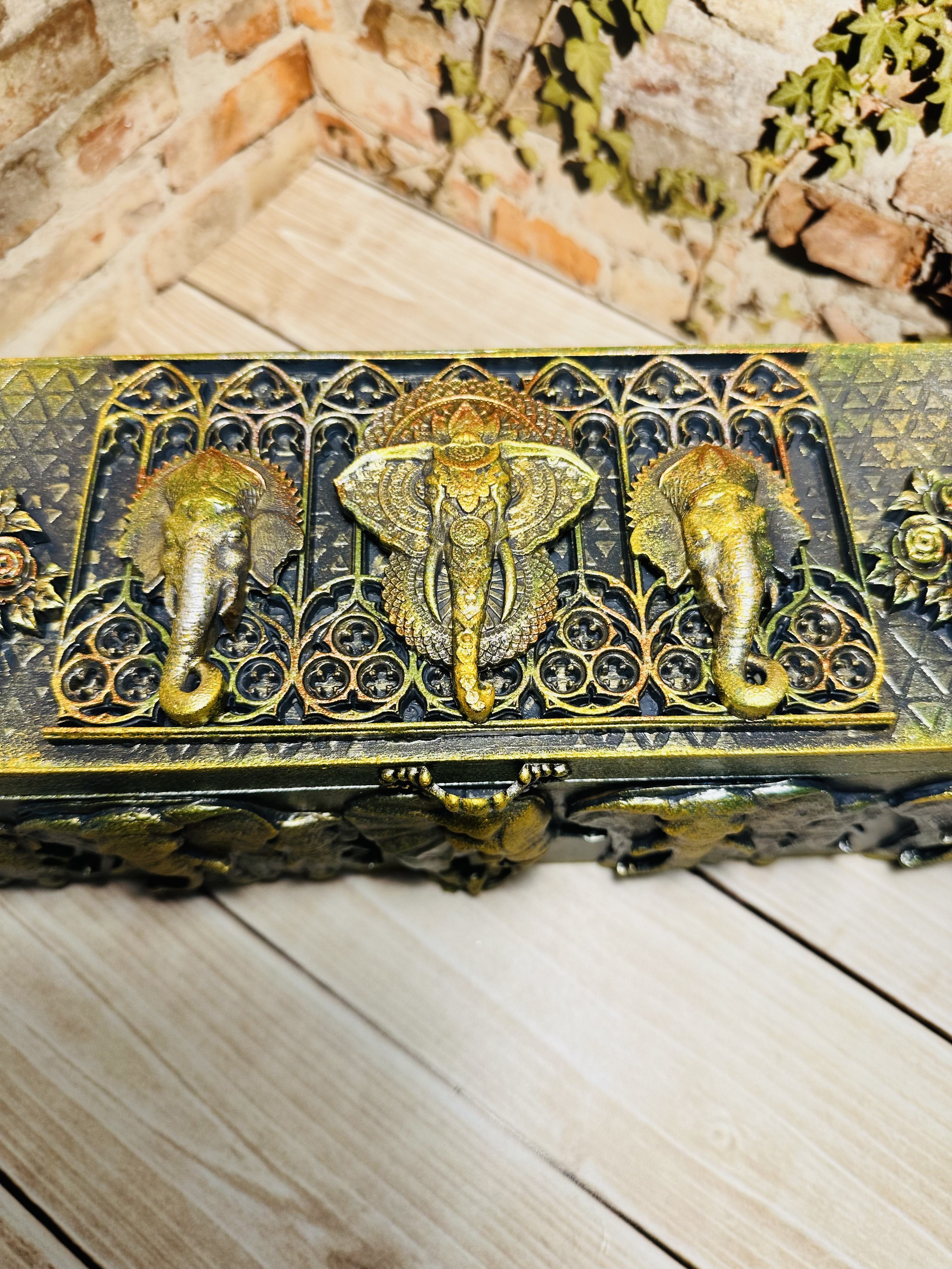 Восточная шкатулка ручной работы, выполненная в изысканном дизайне с символом мудрости и удачи — слоном. Украшение вашего интерьера и надёжное хранение драгоценностей одновременно. Создано из качественного МДФ с применением декоративных техник Mix Media: моделирующие пасты, художественный воск и яркие акриловые краски. Для тех, кто хочет сохранить часы и браслеты в безопасности и порядке, добавляя дому особую эстетику. Сделайте выбор в пользу красоты и функциональности, подарив себе радость от владения уникальным предметом искусства.