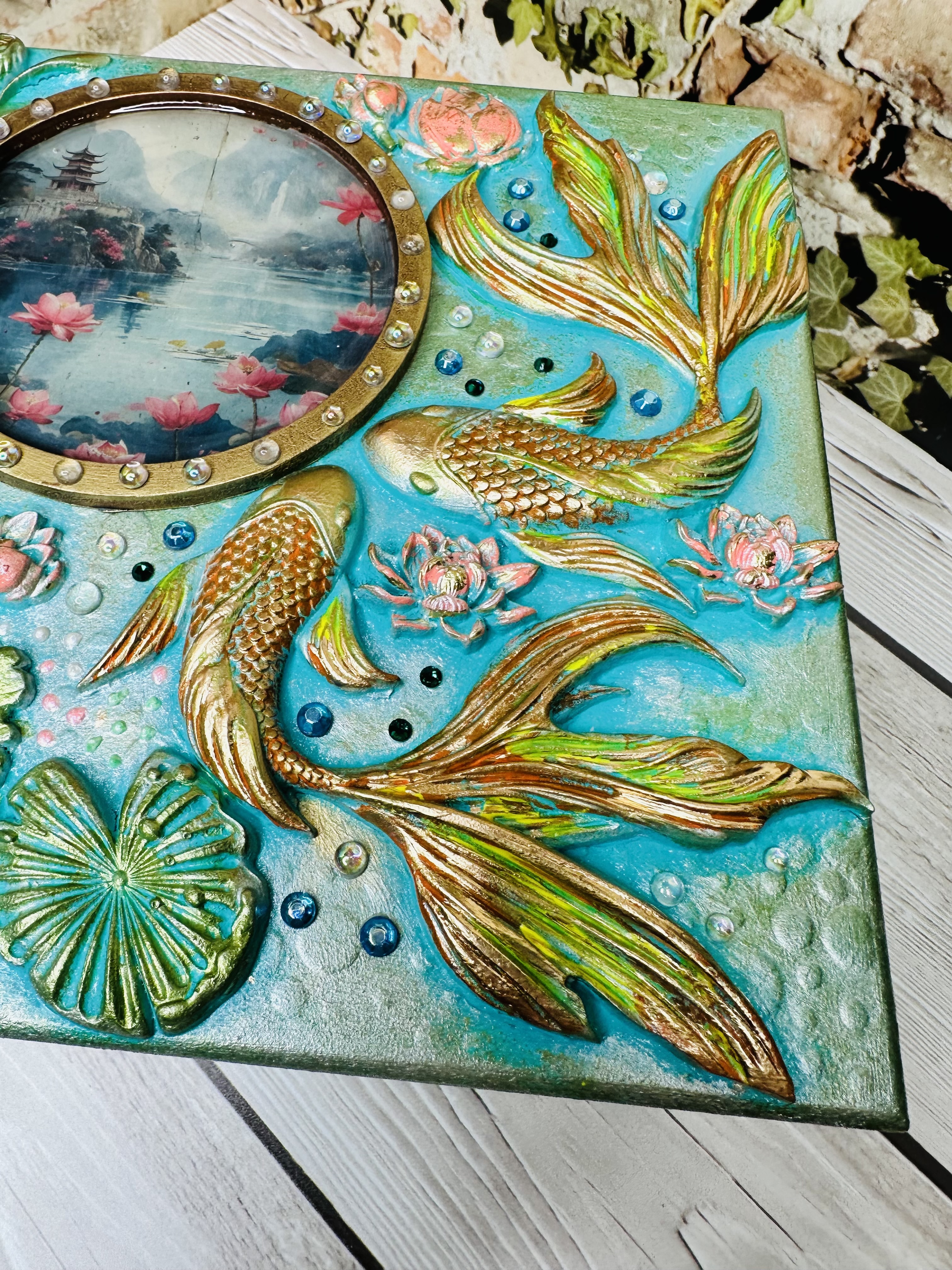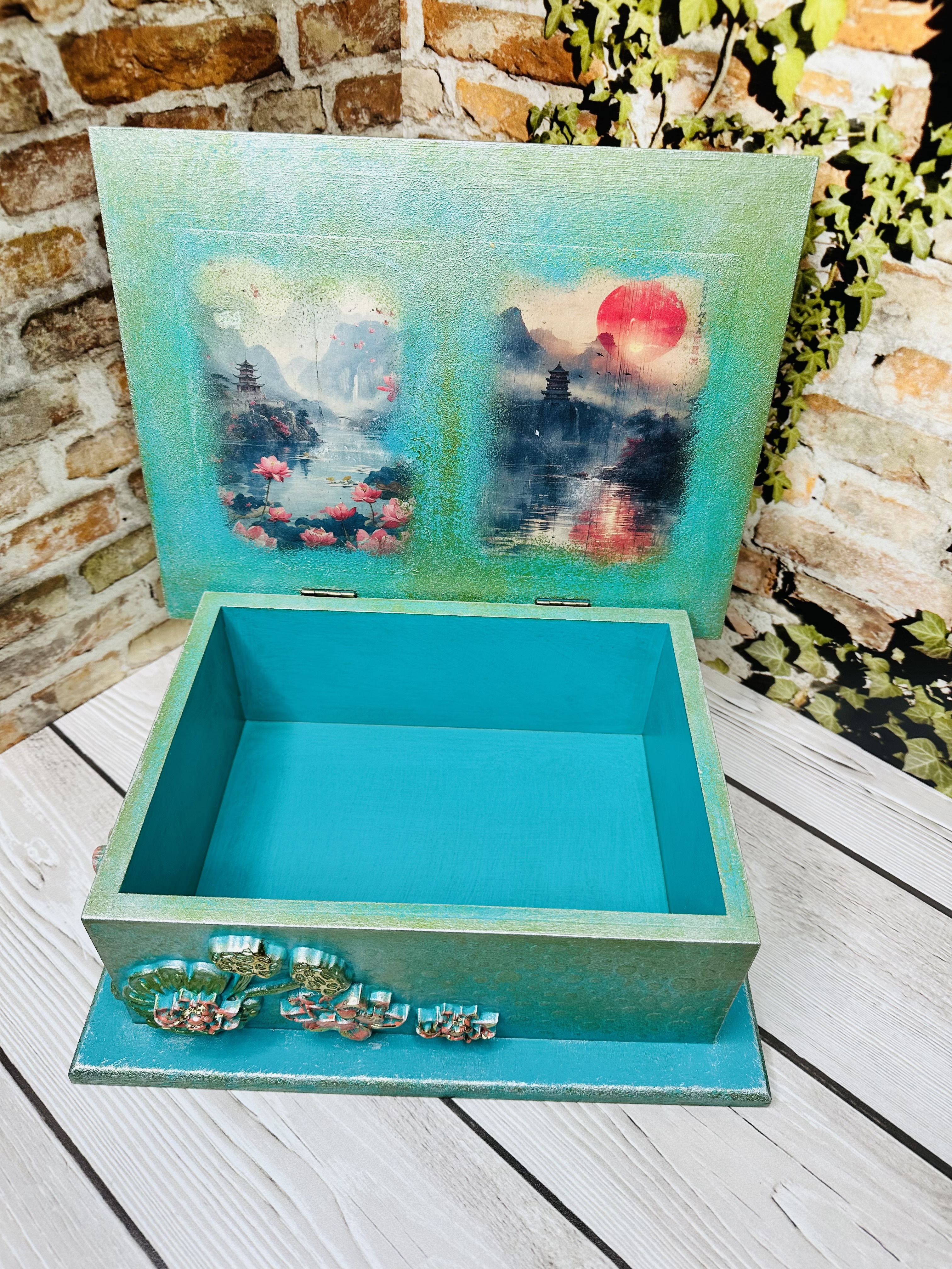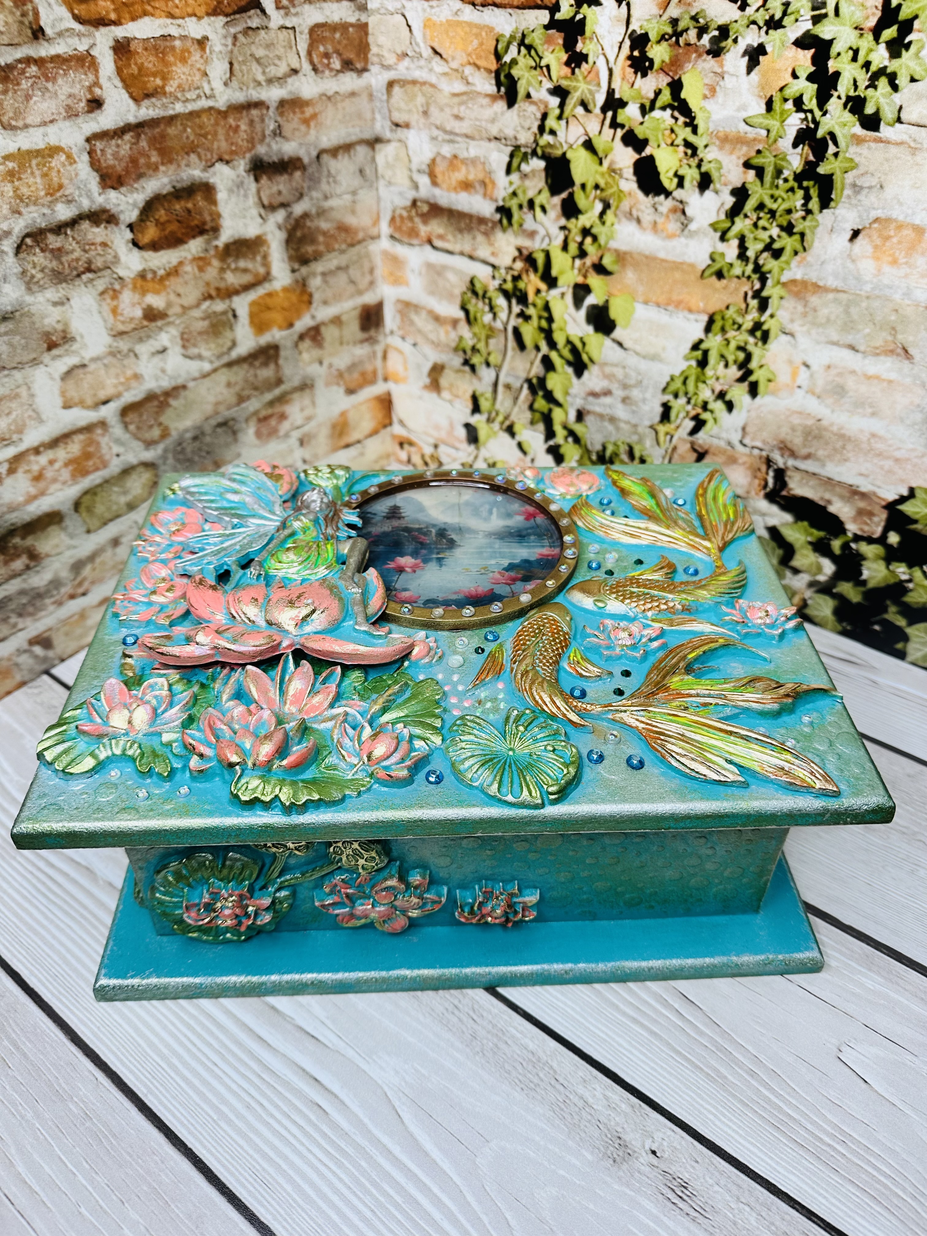 Эта эксклюзивная шкатулка создана вручную в технике Mix Media из натурального МДФ, дополнена декоративными элементами, такими как природные ракушки, моделирующая паста, художественный воск и акриловая краска. Прекрасное решение для бережного хранения ювелирных украшений, личных мелочей и сувениров.Хотите создать уютную обстановку и подарить себе или близким частичку сказочной атмосферы? Шкатулка "Фея на лотосе" привнесёт гармонию и красоту в ваш дом, став оригинальным аксессуаром интерьера и практичным решением для организации личного пространства.