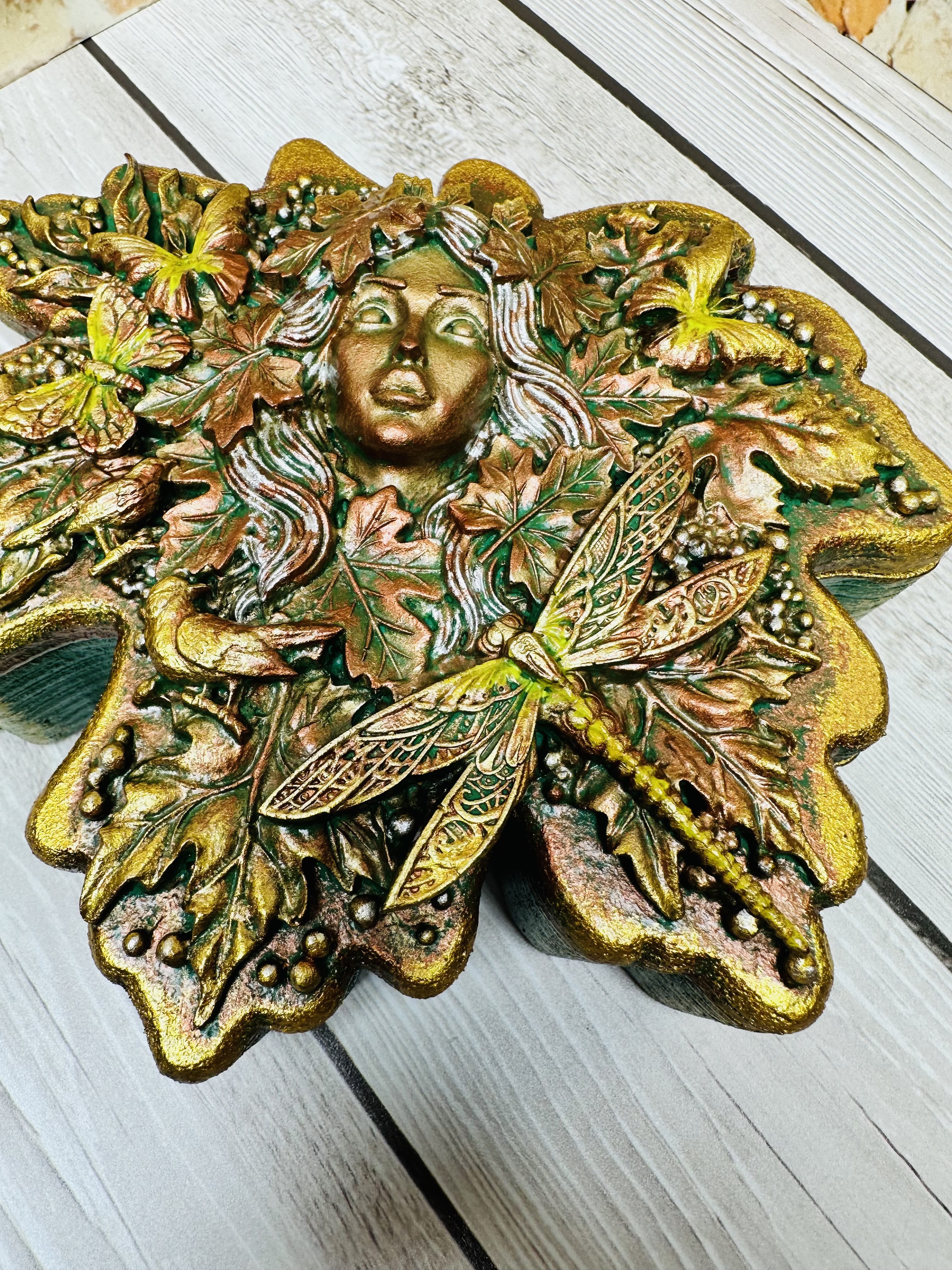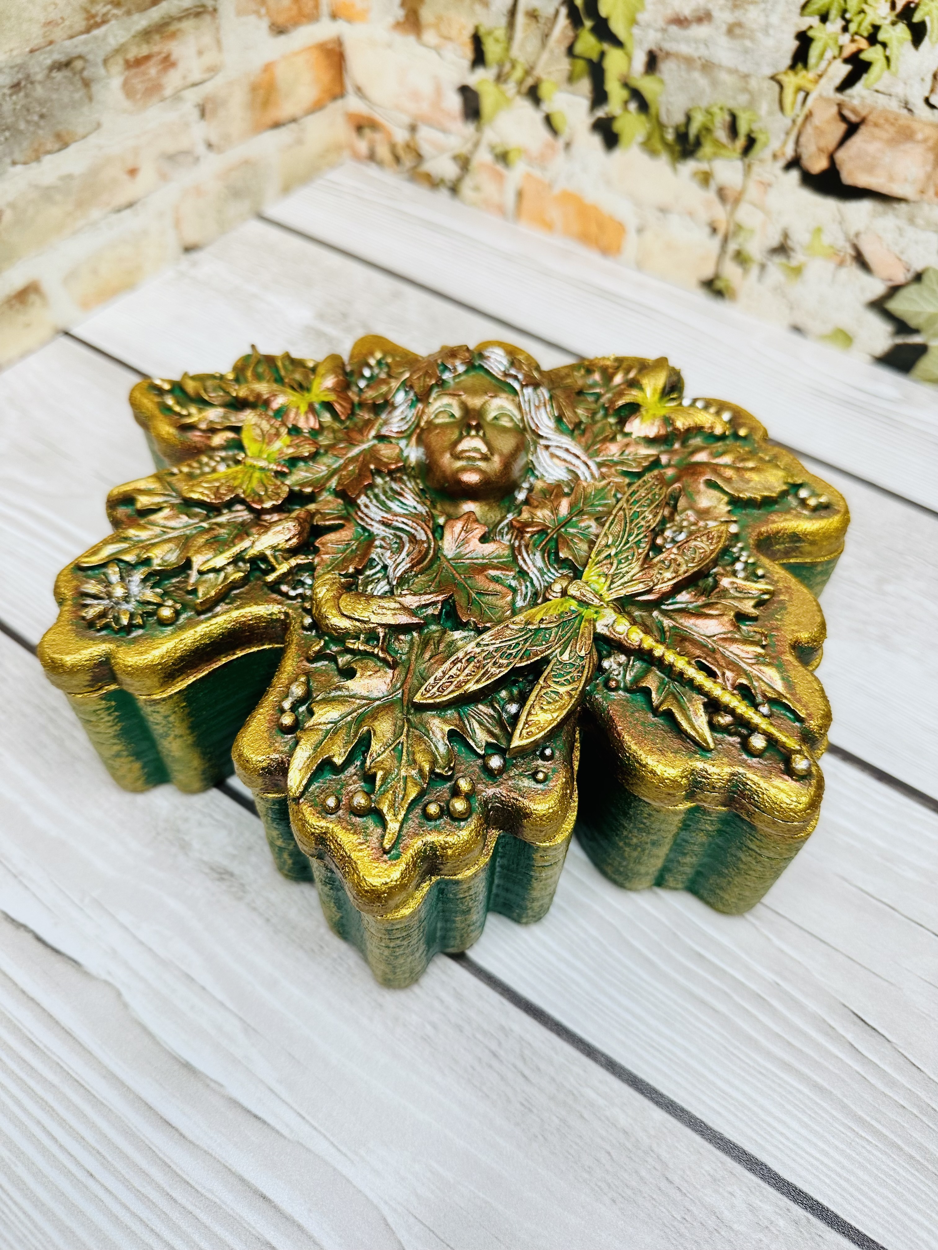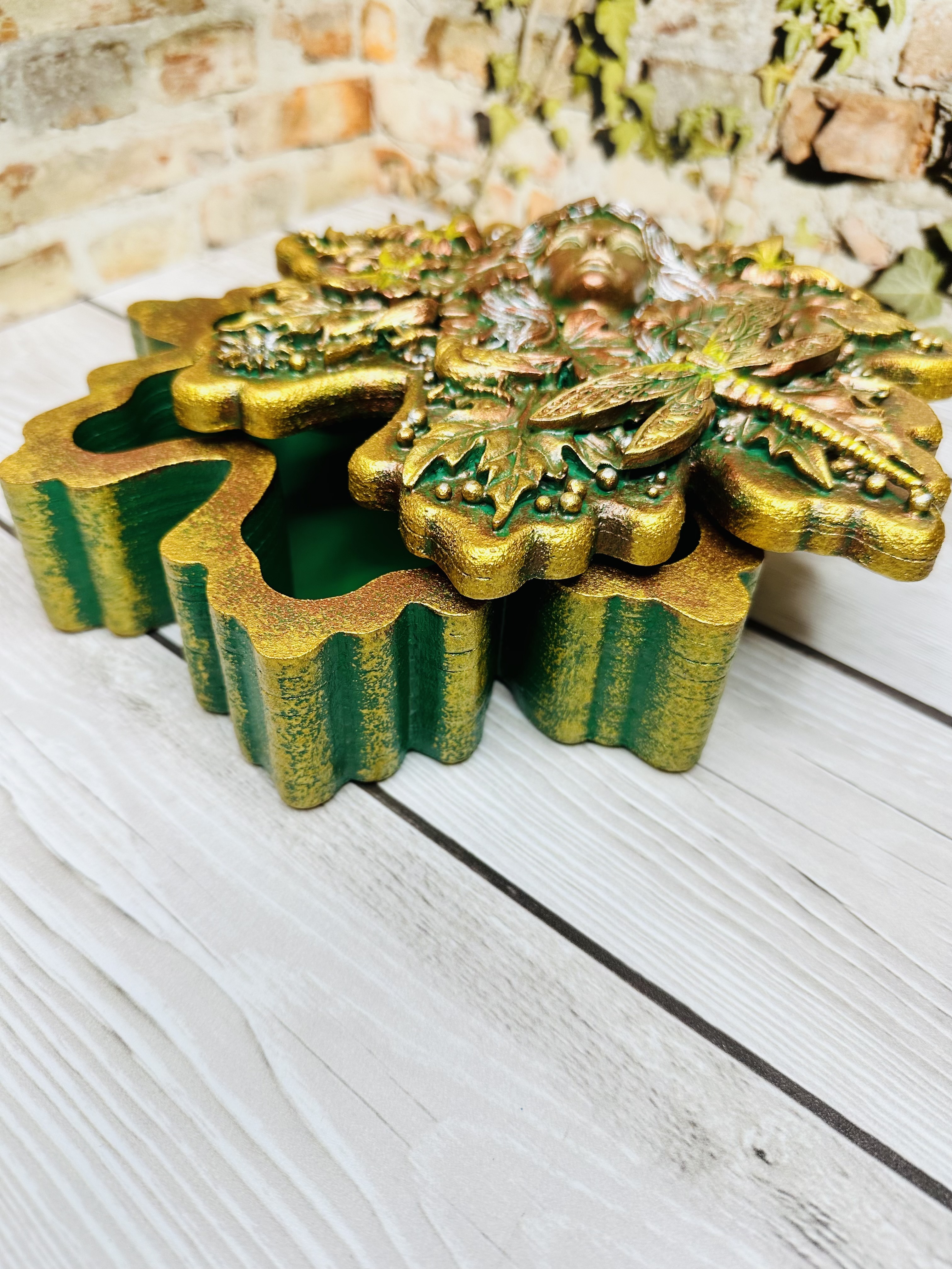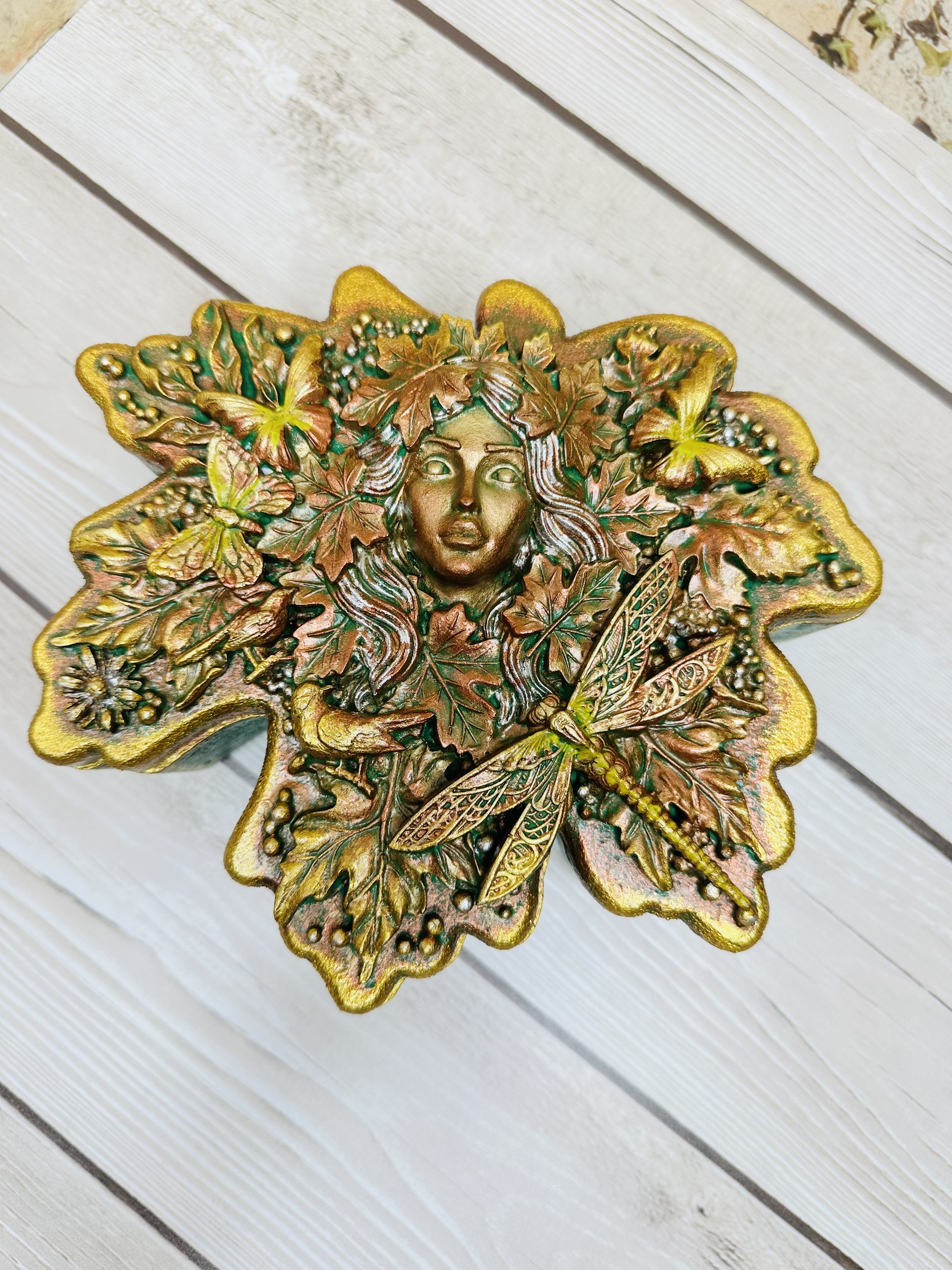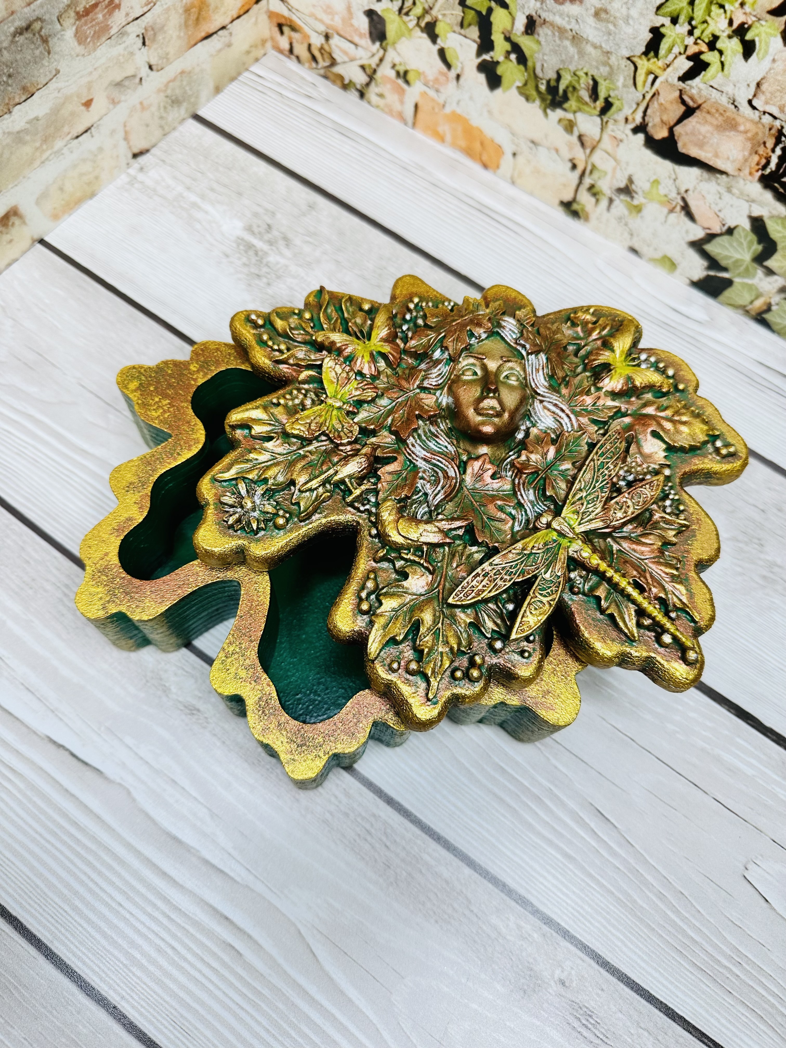 Элегантная шкатулка в форме листочка, оформленная в уникальной технике Mix Media с использованием декоративных элементов, моделировочной пасты, художественных восков и акриловых красок. Прекрасное решение для бережного хранения украшений, драгоценных воспоминаний и небольших ценных вещей. Создаст особую атмосферу в вашем доме благодаря оригинальному дизайну и станет прекрасным подарком для женщин, стремящихся окружить себя красотой и уникальностью. Хотите сделать своё пространство ещё красивее и функциональнее?