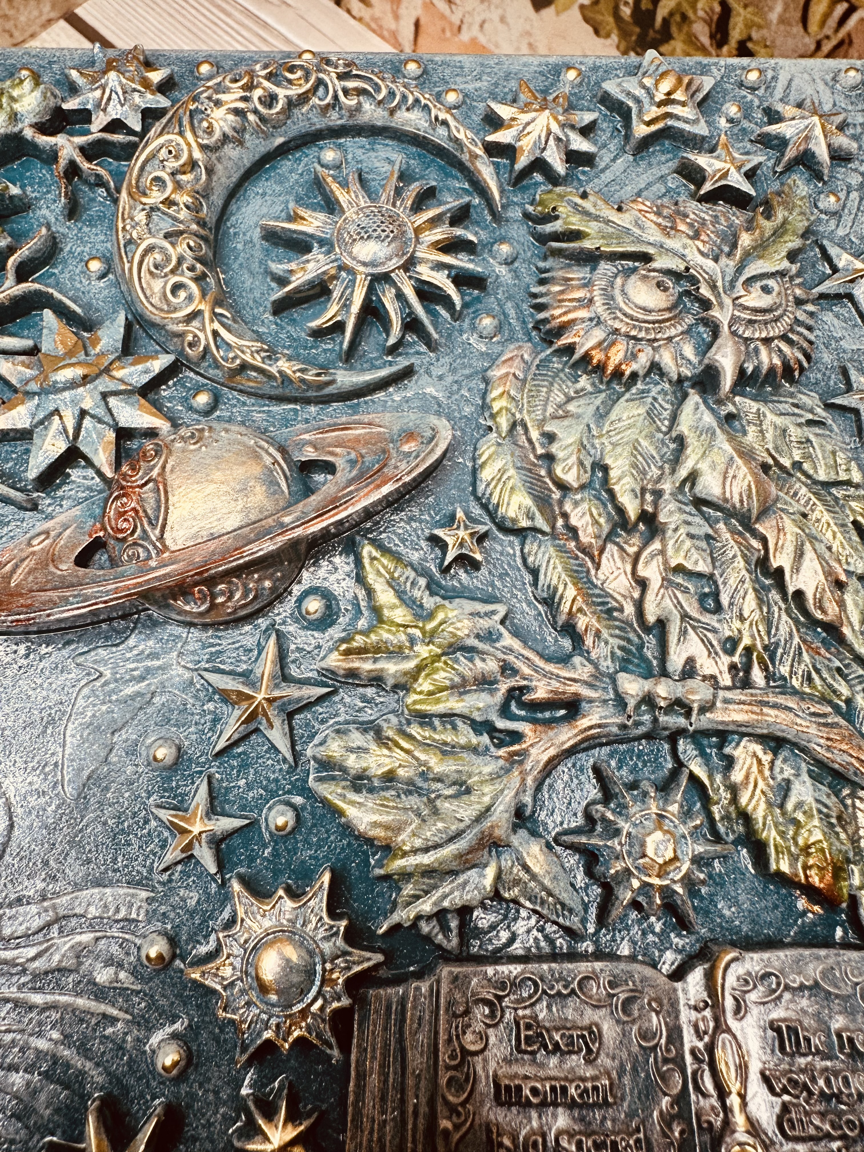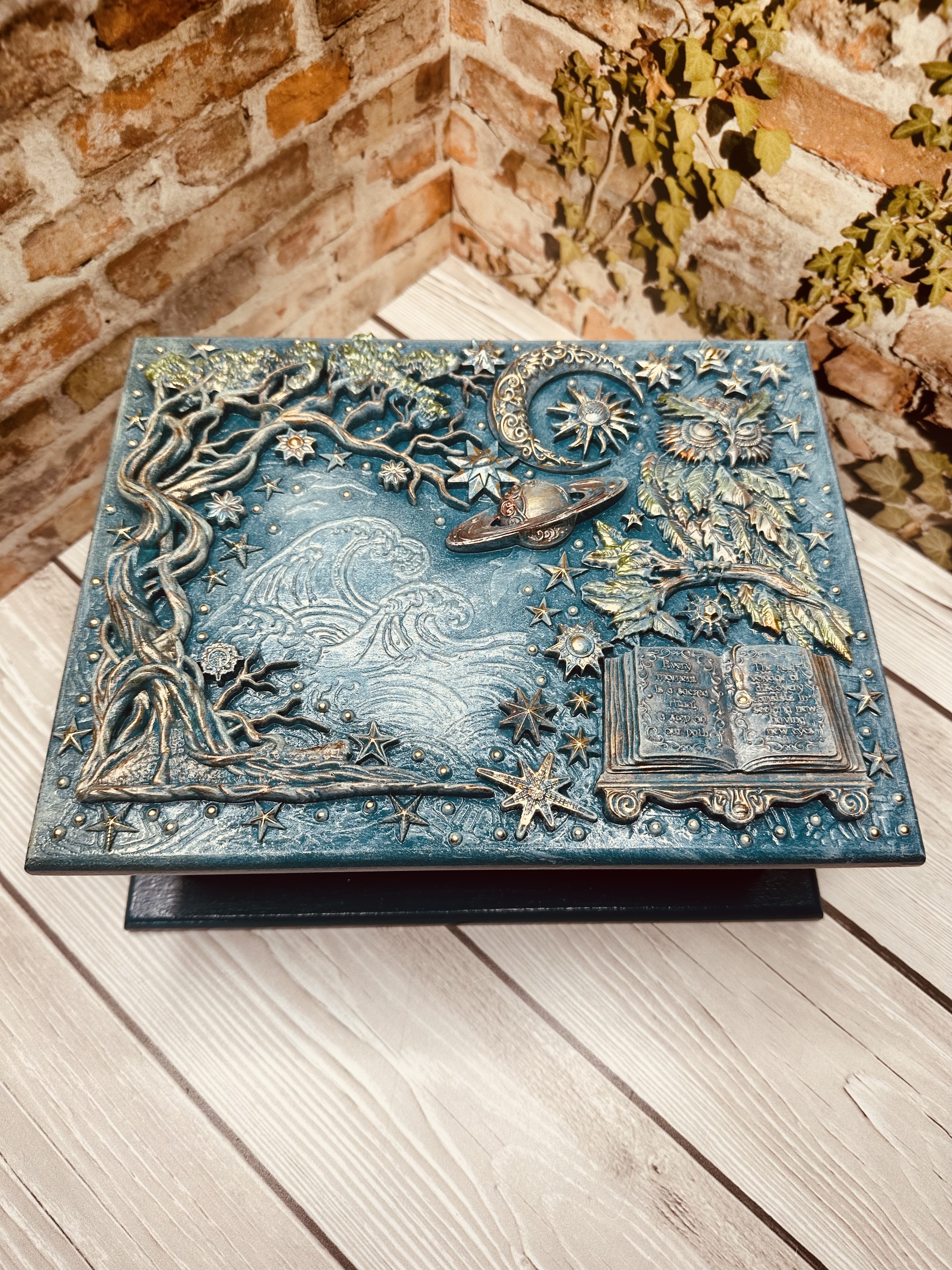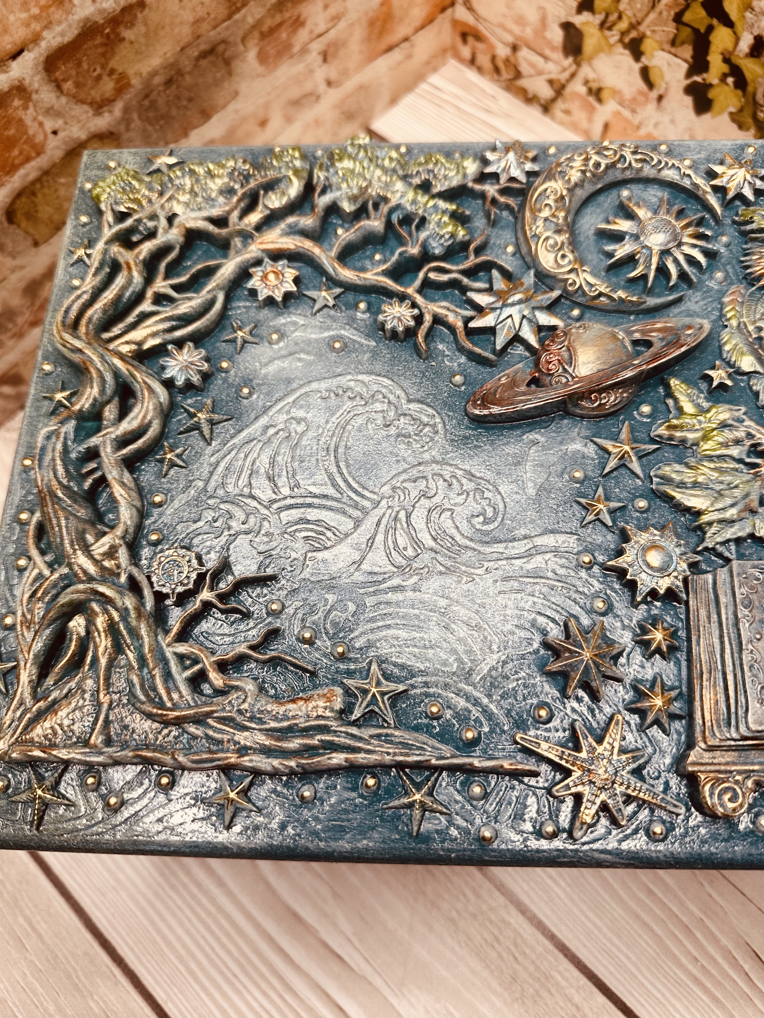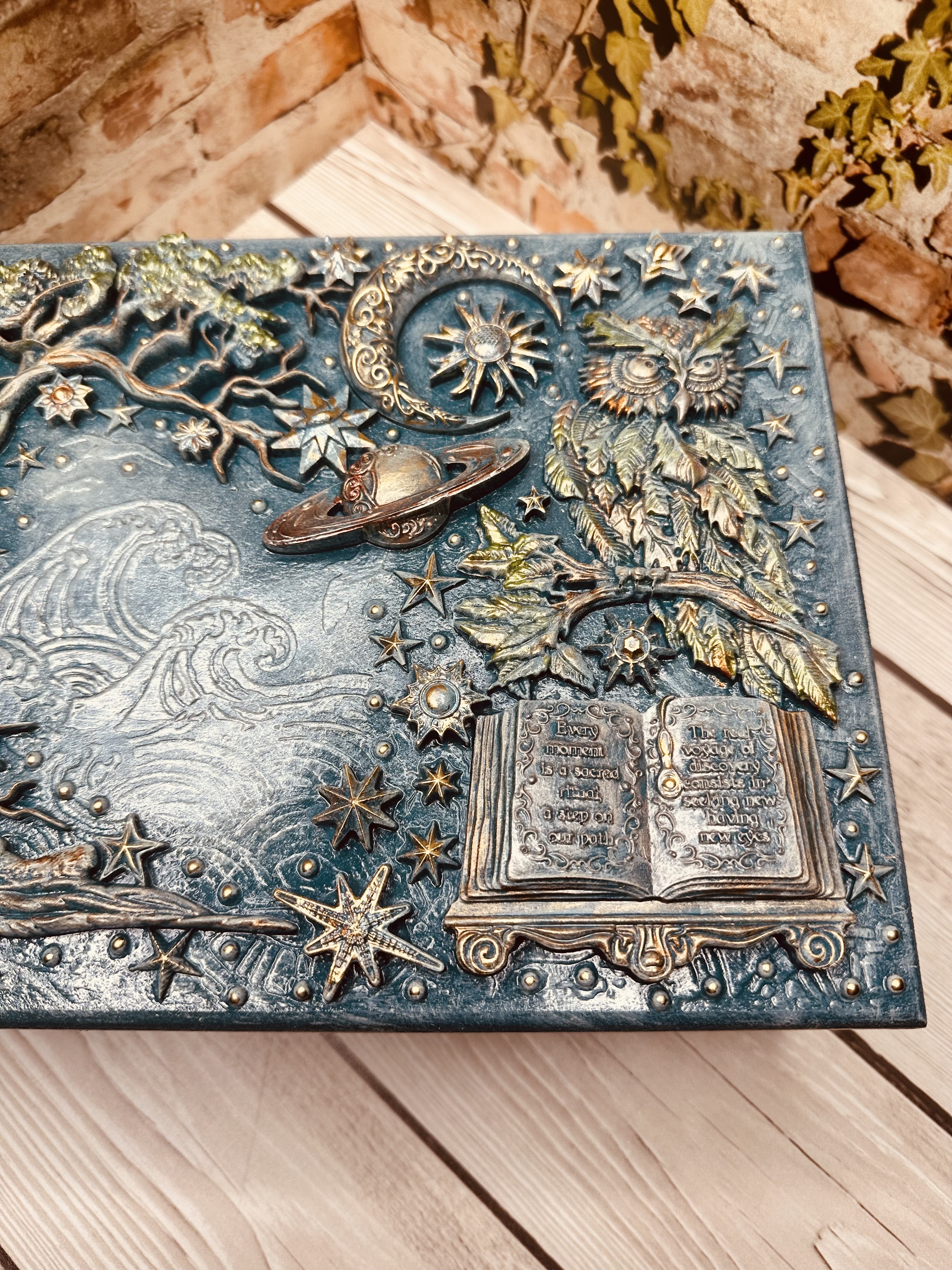 Шкатулка «Мудрость» — элегантное изделие ручной работы из натурального МДФ, дополненное художественными элементами в технике Mix Media. Идеально подходит для бережного хранения украшений, ценных предметов или милых сердцу сувениров. Украсьте ваш дом атмосферной вещицей, подчеркивающей индивидуальность пространства. Такая шкатулка станет прекрасным дополнением интерьера и порадует любую девушку или женщину, предпочитающую уникальные аксессуары.