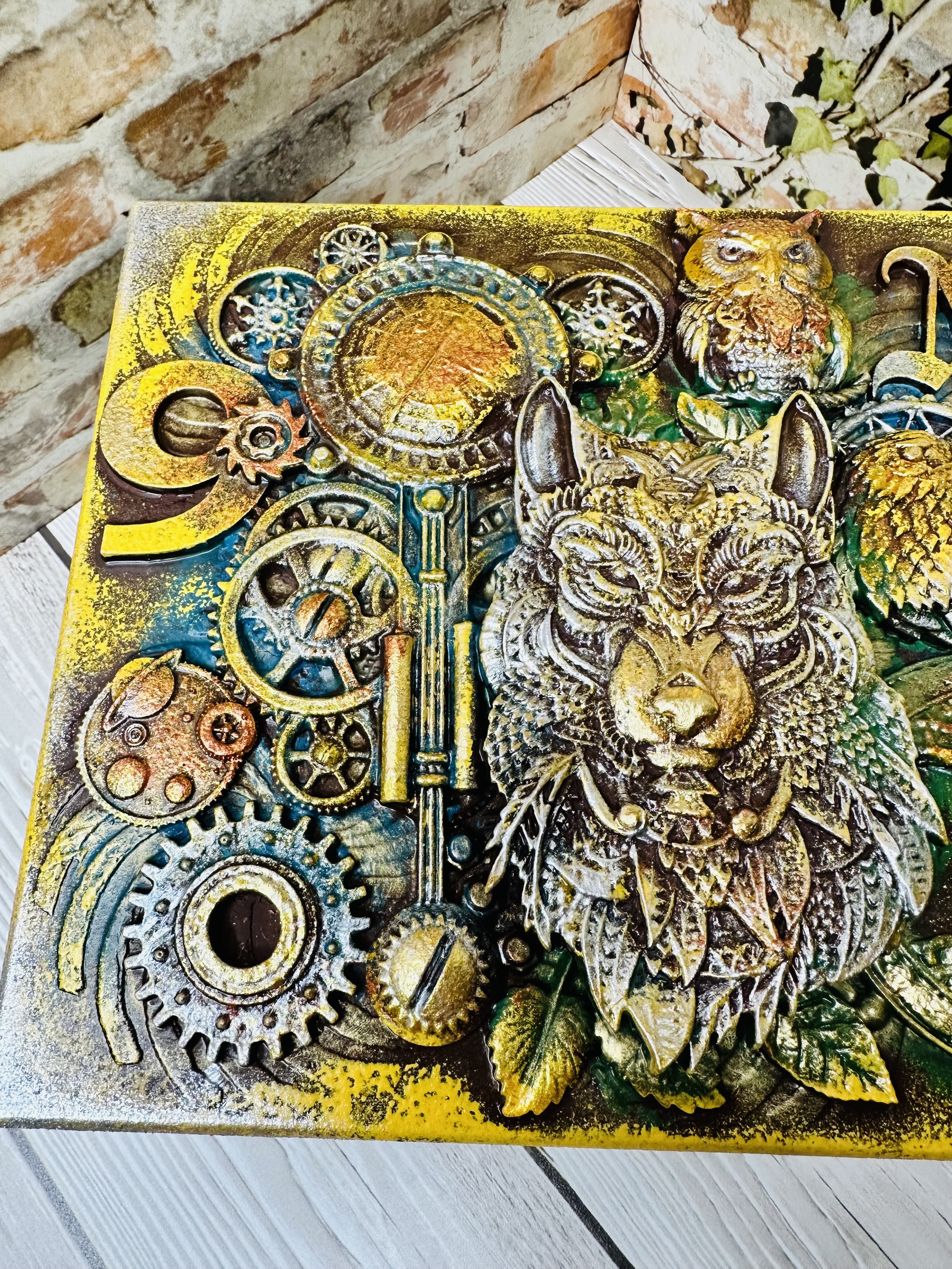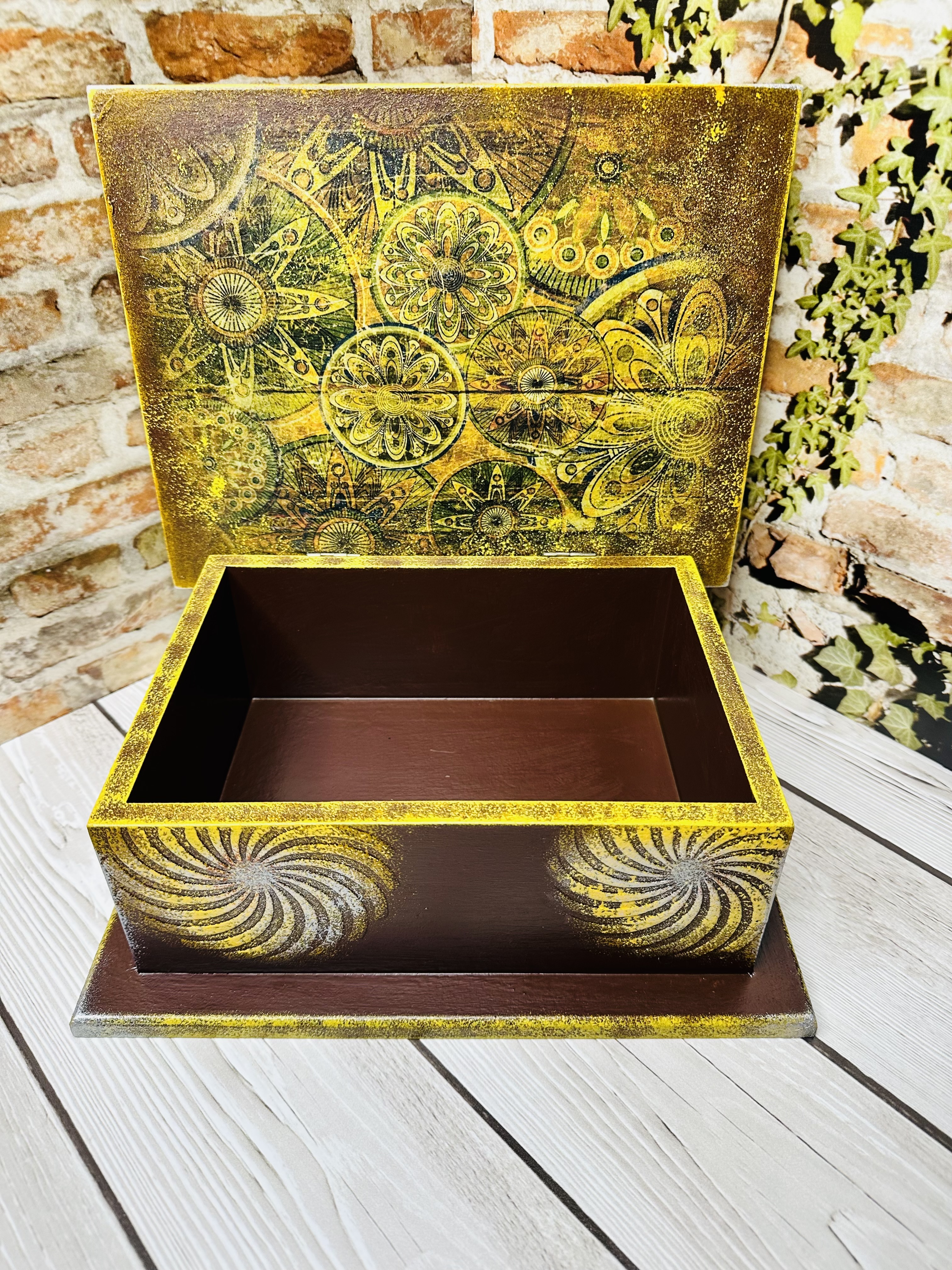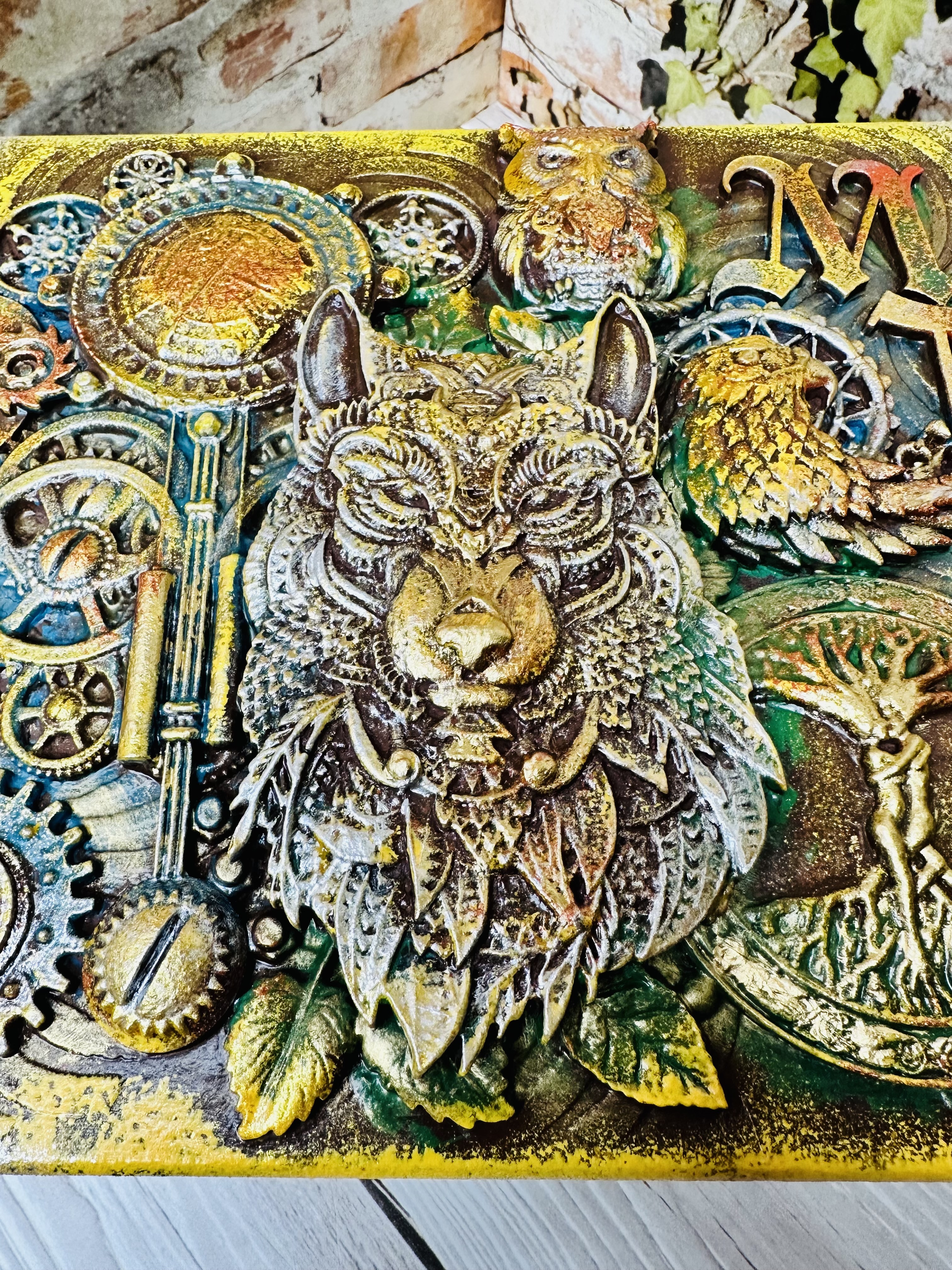 Уникальное изделие ручной работы, изготовленное из экологичного МДФ и украшенное декором в технике Mix Media. Эта шкатулка станет прекрасным местом для бережного хранения любимых украшений, драгоценных воспоминаний и небольших ценных вещей. Добавьте волшебства в интерьер своего дома или сделайте незабываемый подарок близкому человеку. Созданное вручную, оно наполнено атмосферой таинственности и красоты.